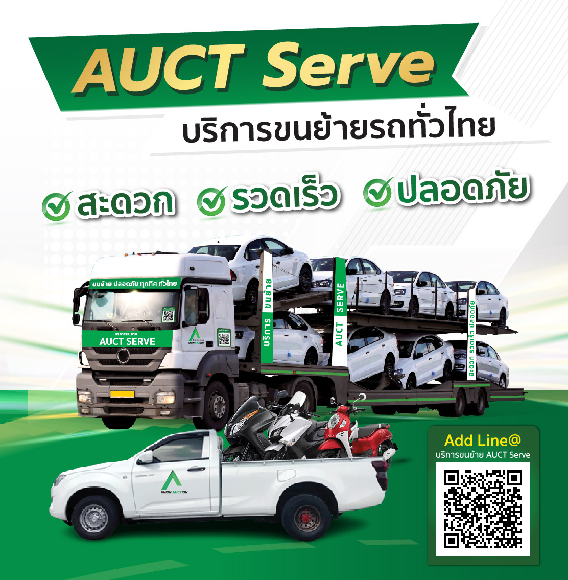 เราให้บริการขนย้าย รถยนต์ และรถจักรยานยนต์ ด้วยอัตราค่าบริการตามระยะทาง จัดส่งรวดเร็ว